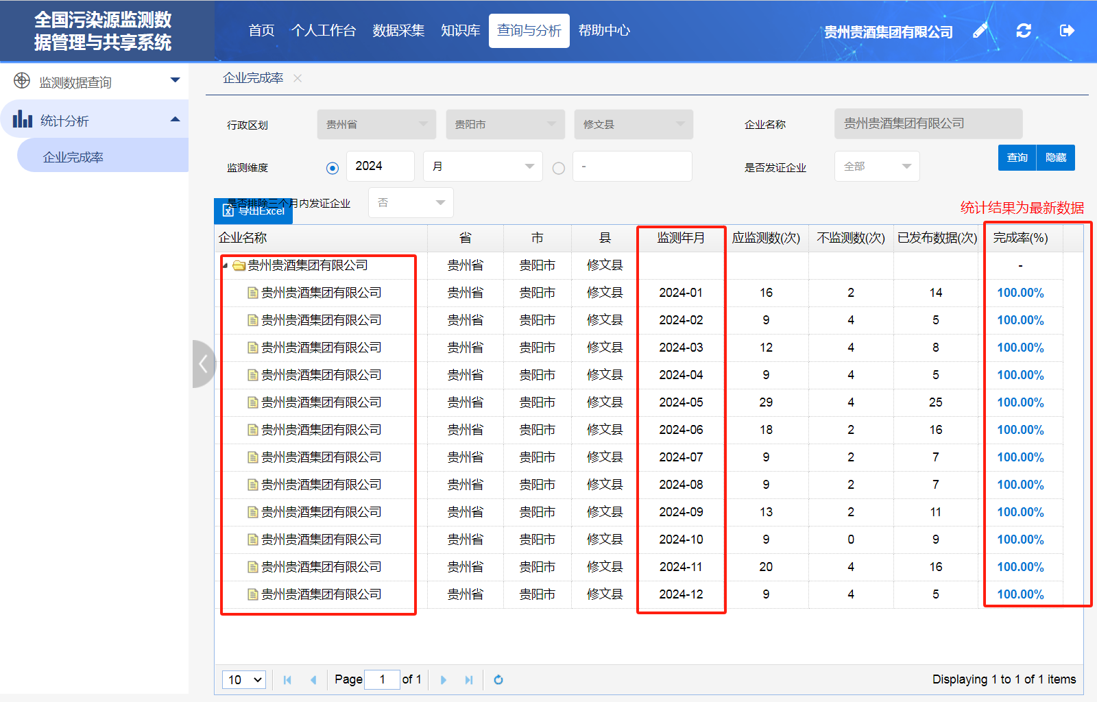 貴州貴酒集團有限公司按時制定年度自行監(jiān)測計劃,報貴陽市生態(tài)環(huán)境修文分局備案。每月、季度開展一次自行監(jiān)測,2024年度共開展16次,自行監(jiān)測完成率100%;每季度監(jiān)測結(jié)果及時在全國污染源監(jiān)測信息管理與共享平臺進行公示,平臺自行監(jiān)測有效公示率100%。